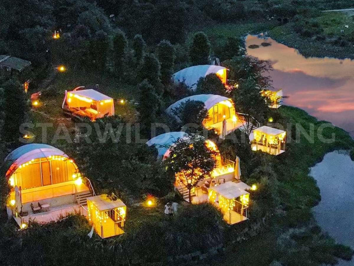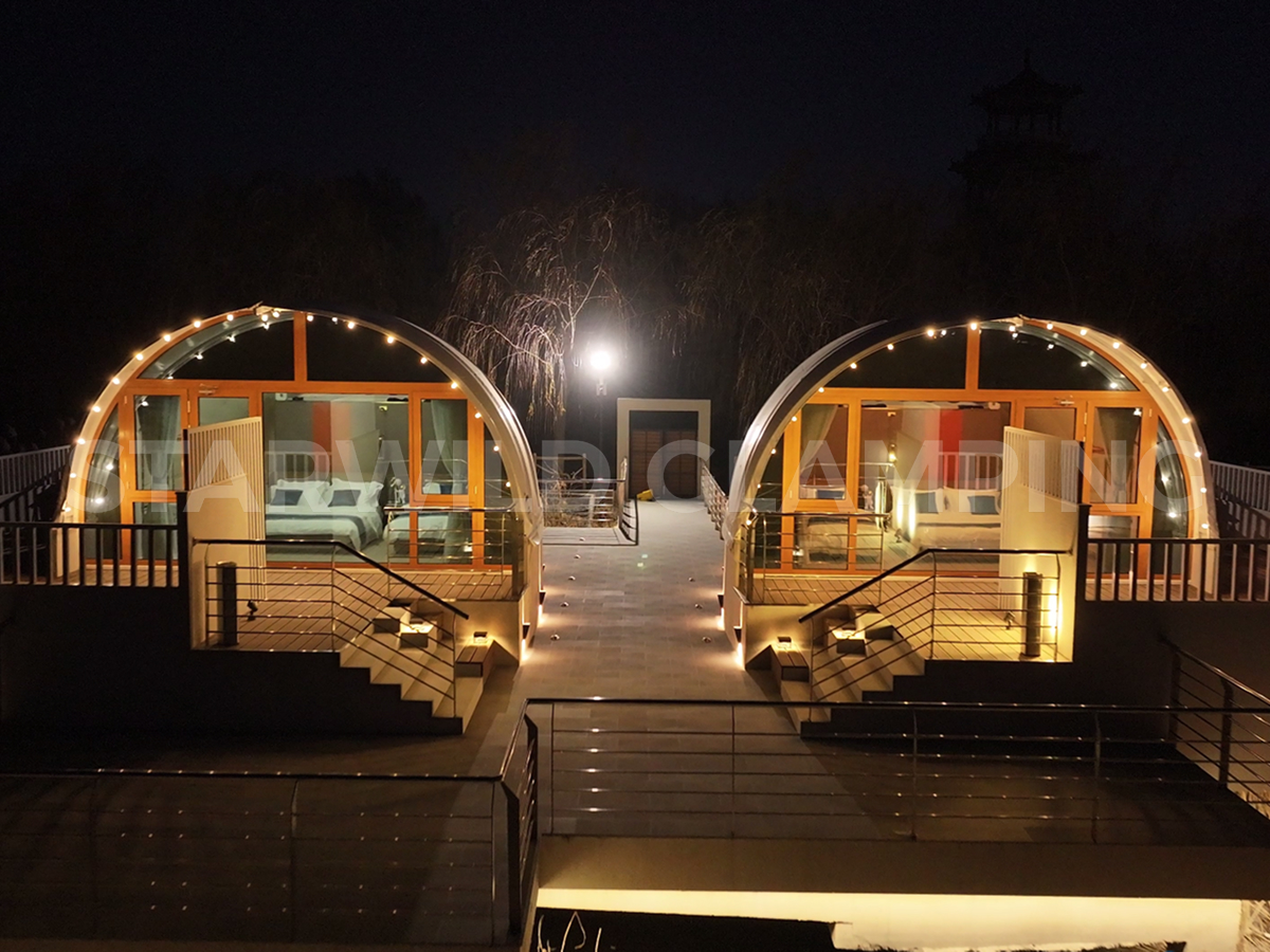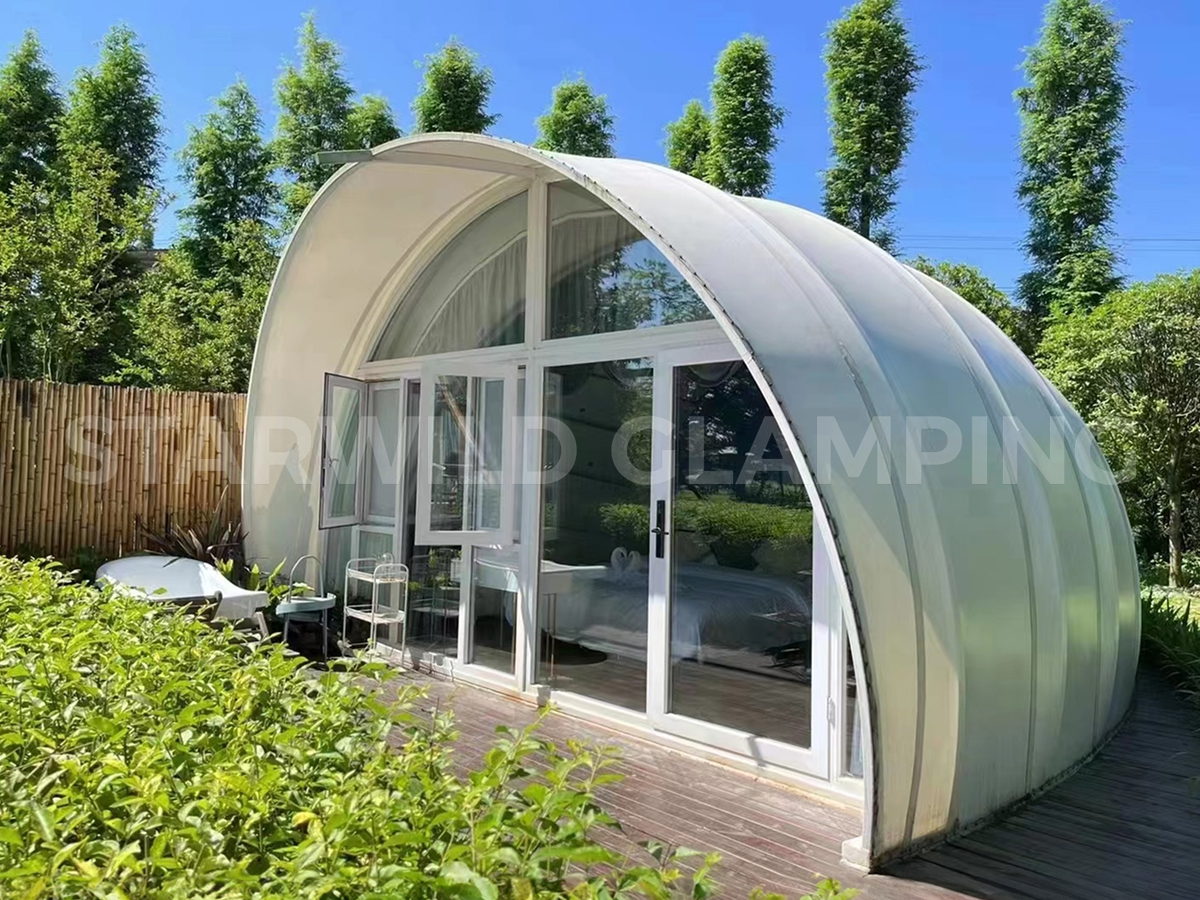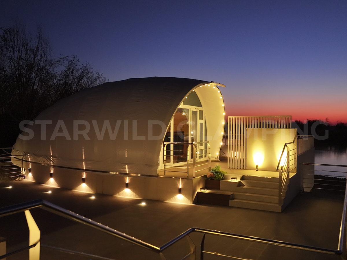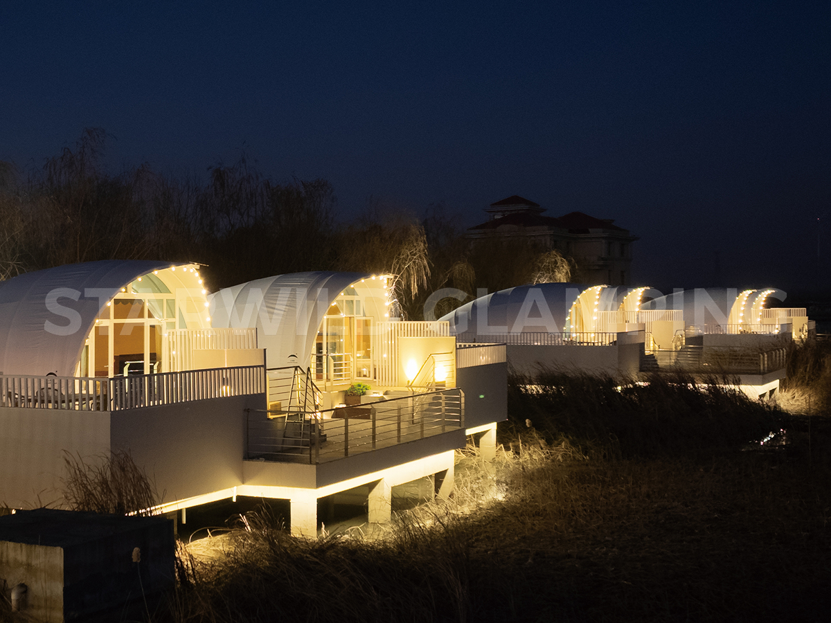 The Aquarius Type Luxury Glamping Tent is built with a sturdy and durable structure. It features a galvanized steel frame with a special outdoor coating, ensuring strength and resistance to harsh weather conditions.