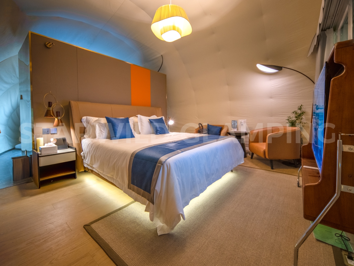 With a 5*10.5m design, this luxury camping tent provides ample space for relaxation. It combines the thrill of camping with the comforts of a luxury hotel.