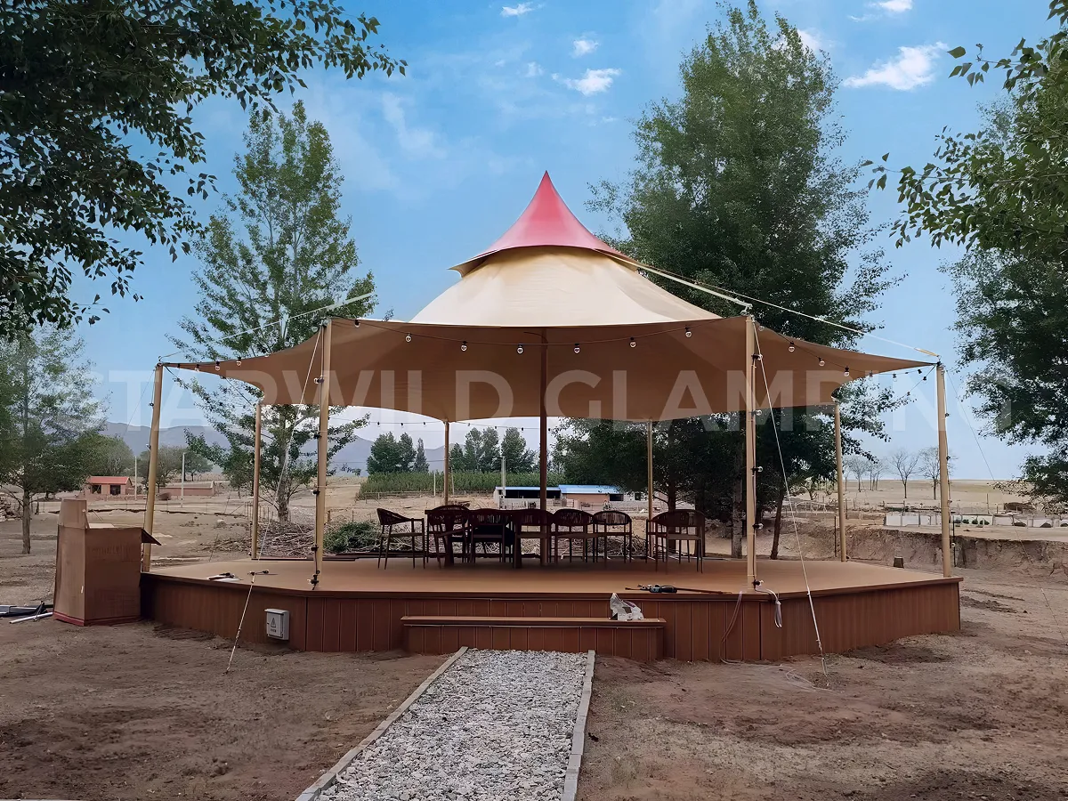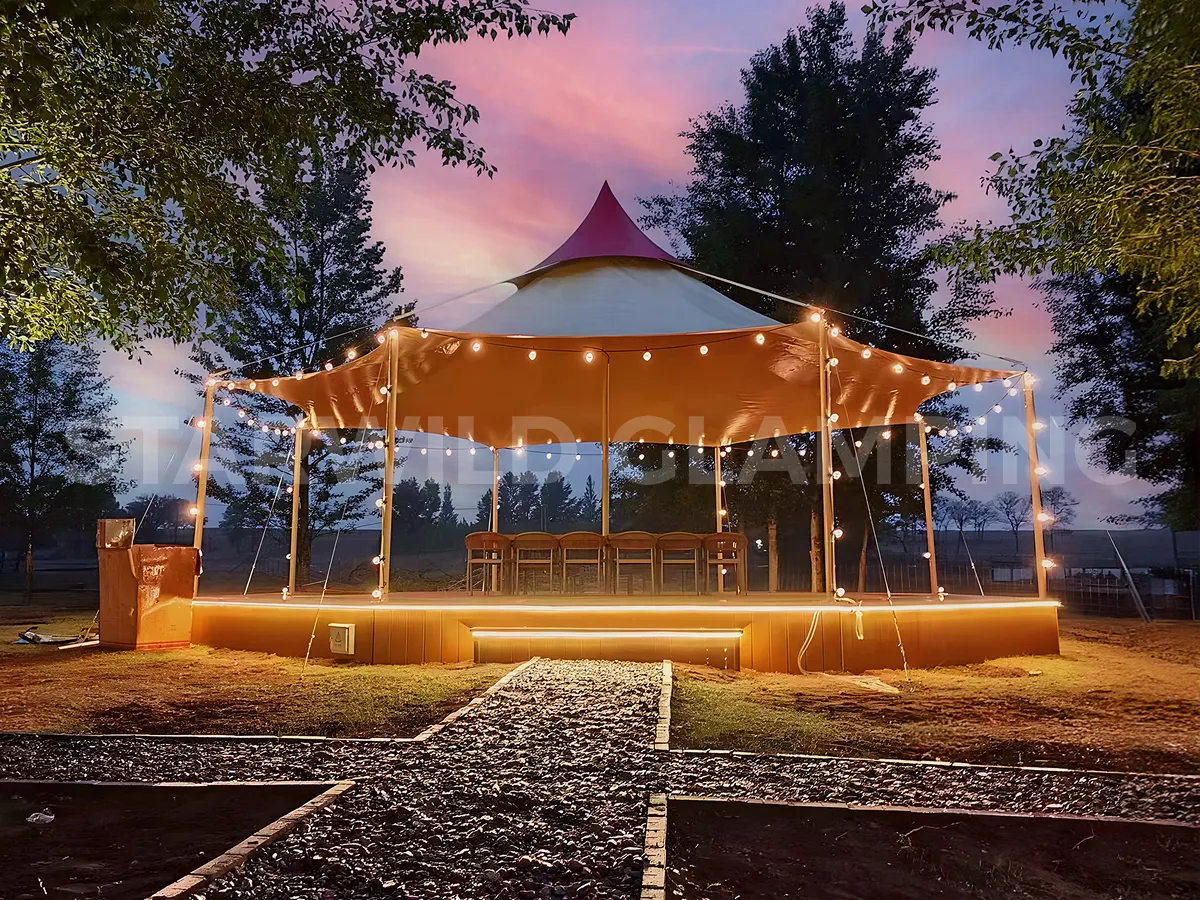 Echoing the essence of Landscamper's logo, our design draws inspiration from the eminent architect Peter Zumthor's idea: "By lifting the earth, we create a canopy." Crafted from glavanized steel pipe and adorned with UV-resistant fabric canopy, this structure offers a cozy haven, perfect for picnics or outdoor relaxation.