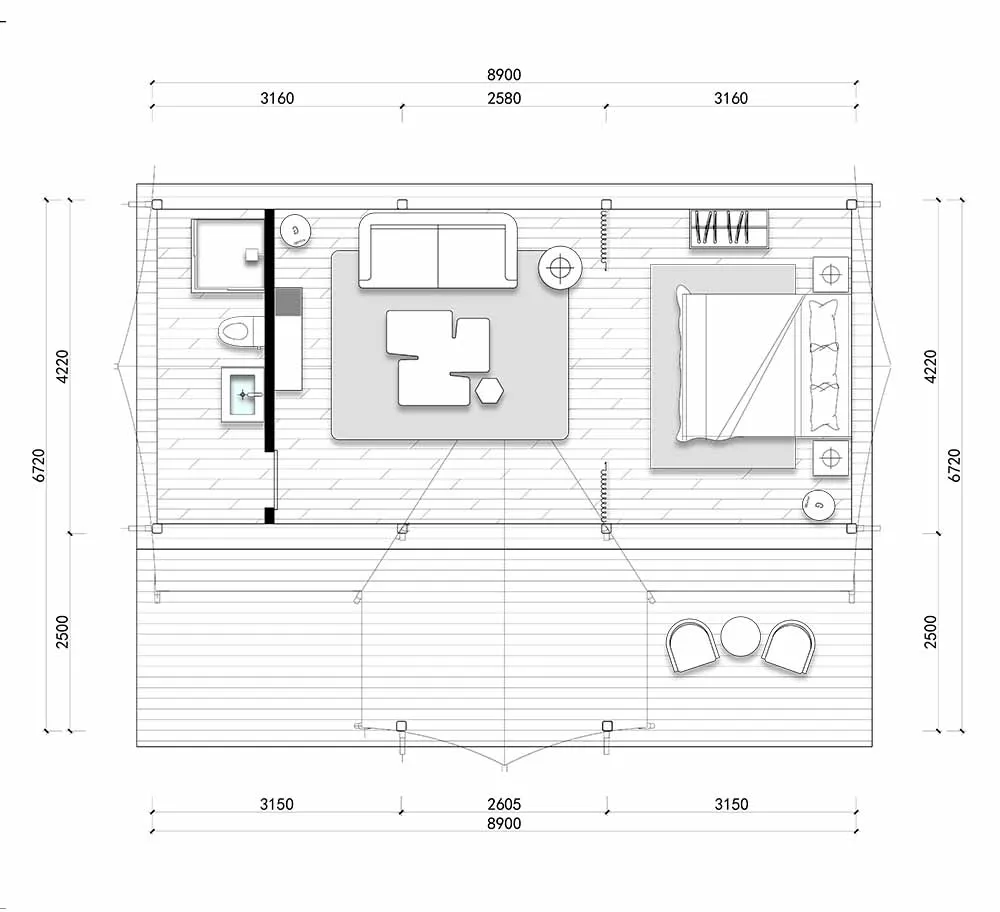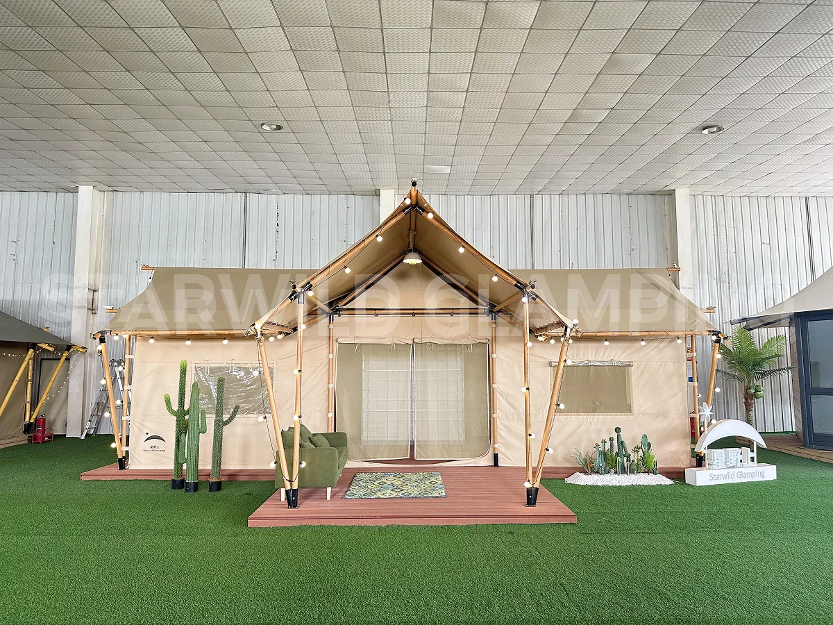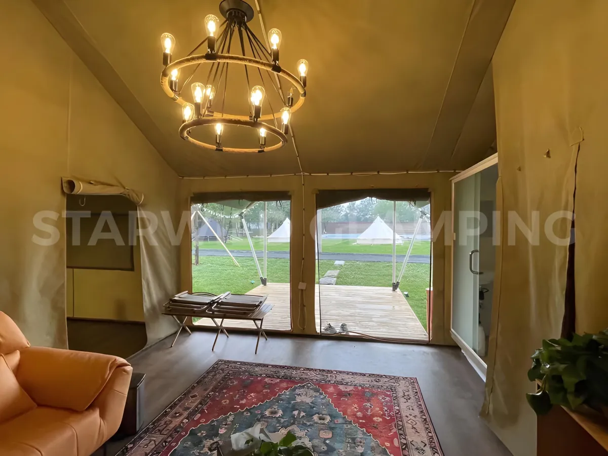 The Leo Type Safari Lodge is built with a sturdy and durable structure. It features a steel frame with a special outdoor coating, ensuring strength and resistance to harsh weather conditions.