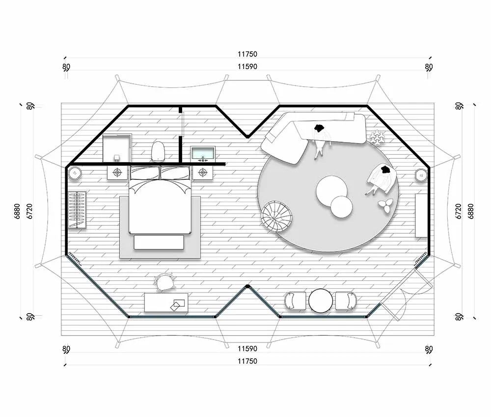 This is a larger model in the Libra series, offering more space for larger families or groups. As a luxury camping tent, the Libra-D features a spacious interior and a sturdy structure, ensuring a comfortable and safe stay in the wild.