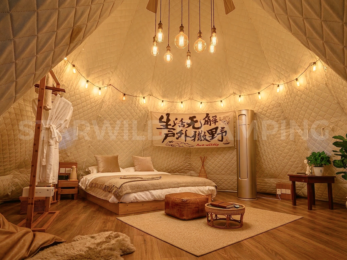Designed for year-round use, with optional insulation for colder climates, Starwild Tipi Glamping Tent brings together comfort, durability, and design. A signature solution for resorts and camps aiming to create memorable, high-end stays.