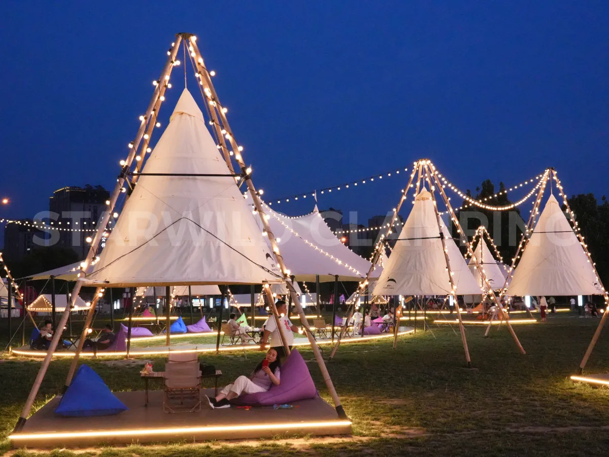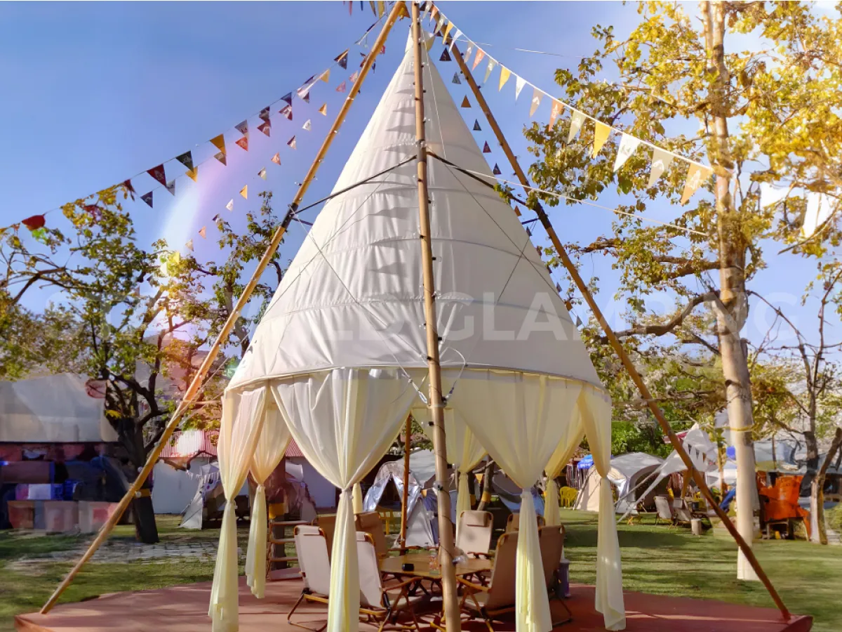 This pyramid canopy camping event tent offers a comfortable and practical camping experience. The fancy camping tents are easy to set up and take down, making it perfect for those who want a hassle-free camping trip.
