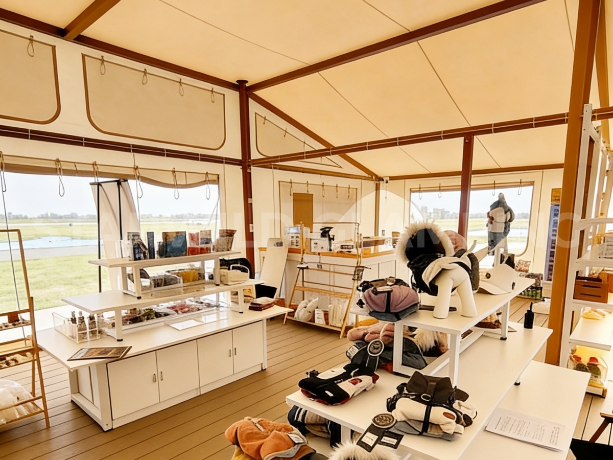 With about 88.5 sqm of usable space, it supports dining areas, event spaces, or multi-zone guest accommodation. The spacious interior allows flexible layouts, including bedrooms, lounge areas, and service zones within one structure. Built with waterproof, UV-resistant, flame-retardant materials and long-life anti-fungal treatment, it ensures durability and low maintenance.