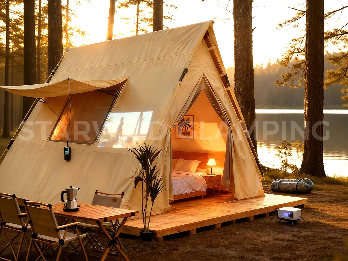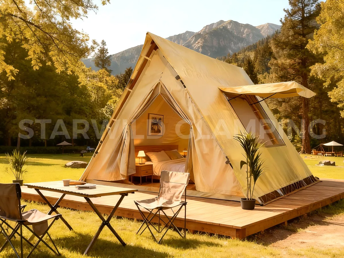 Whether you're a solo traveler or a couple seeking a close, cozy space, this glamping tent offers a reliable, sustainable base for all your outdoor needs.