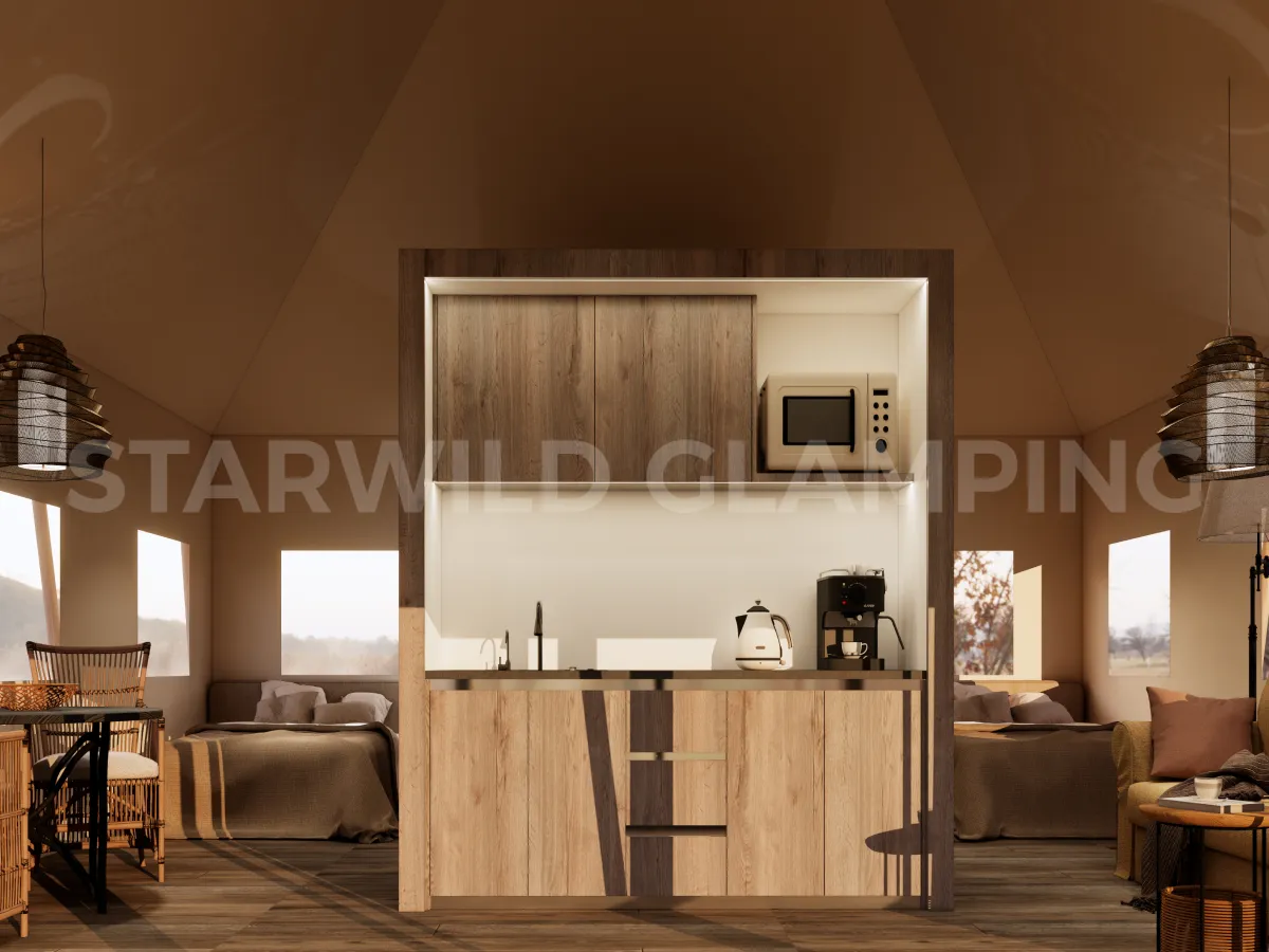 The Purple Microstar is a luxurious glamping tent, perfect for those who want to enjoy the outdoors in style. As a luxury tents for glamping, it features a spacious interior and a sturdy structure, ensuring a comfortable and safe stay in the wild.