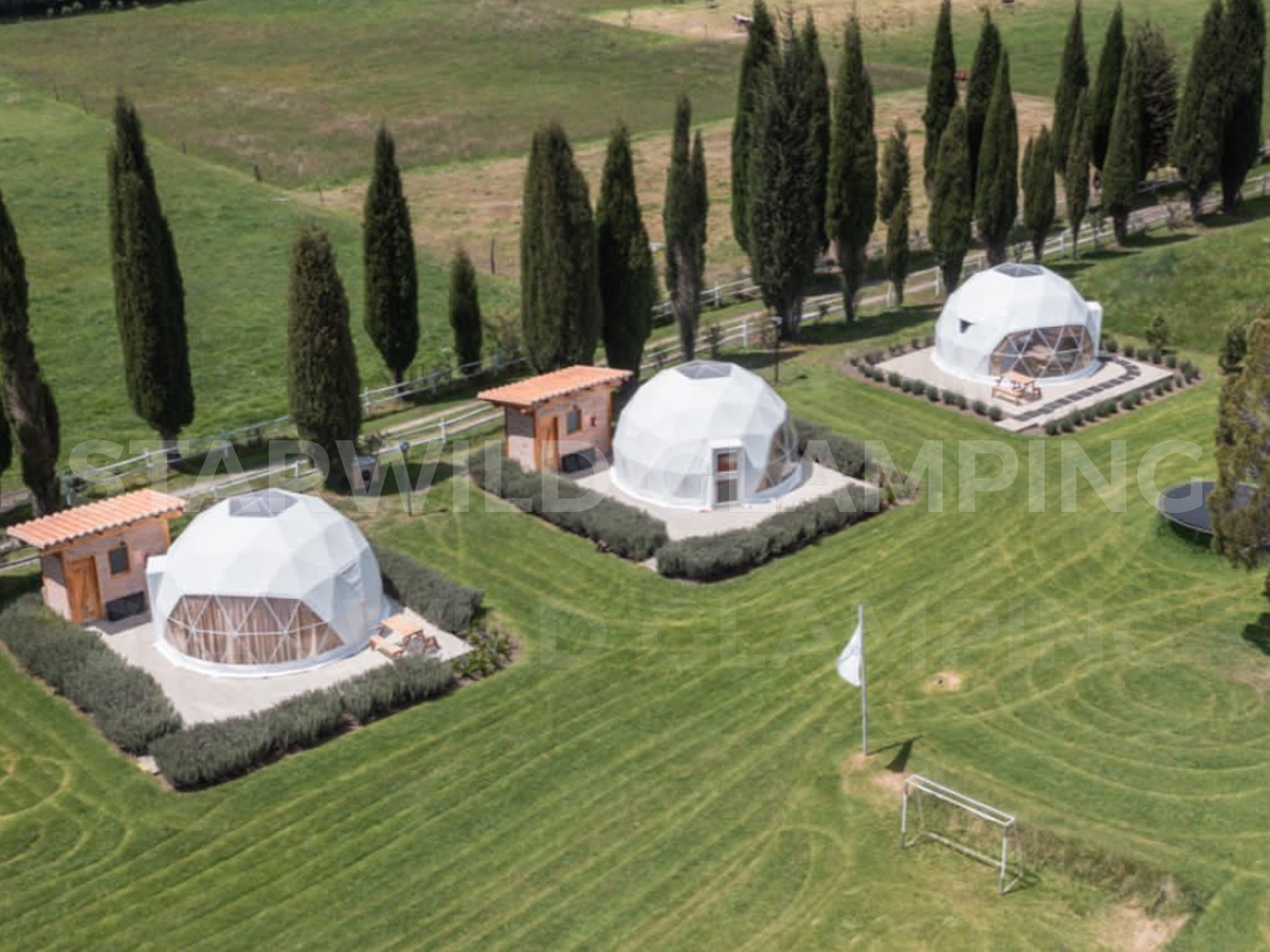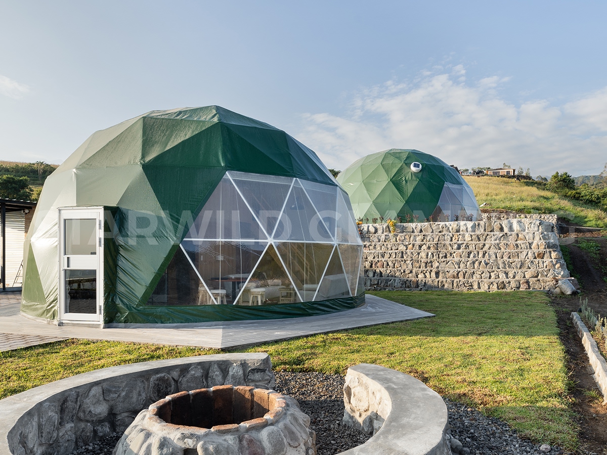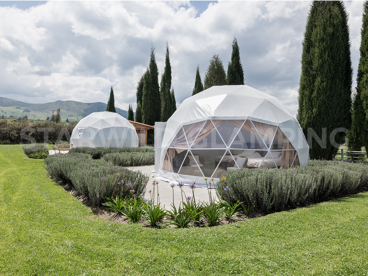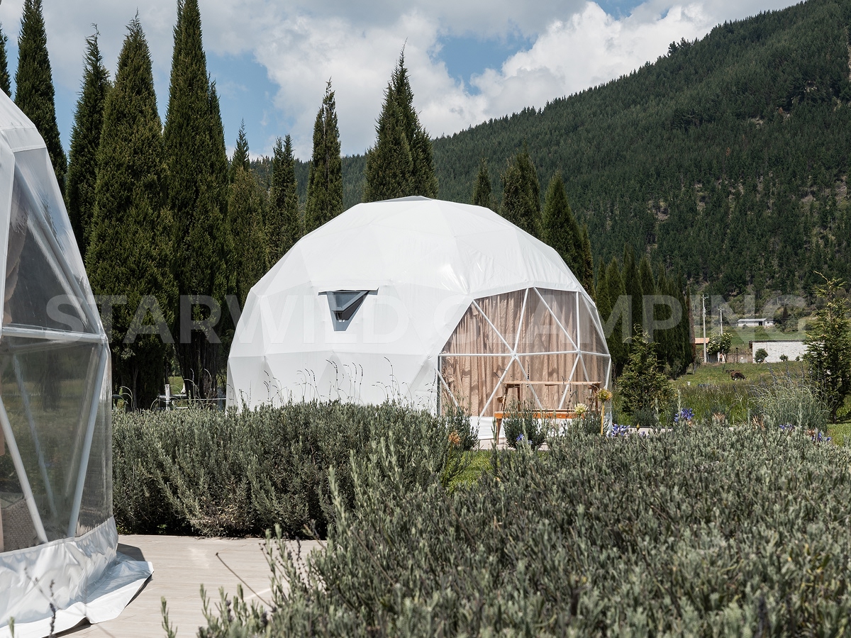 The Sirius is a luxurious glamping dome tent designed for comfort and convenience. Geo dome tent glamping features a sturdy structure and a spacious interior, making it ideal for family camping trips. Our Starwild extensive collection of glamping dome tents for sale offers a range of sizes and customization options for your needs.