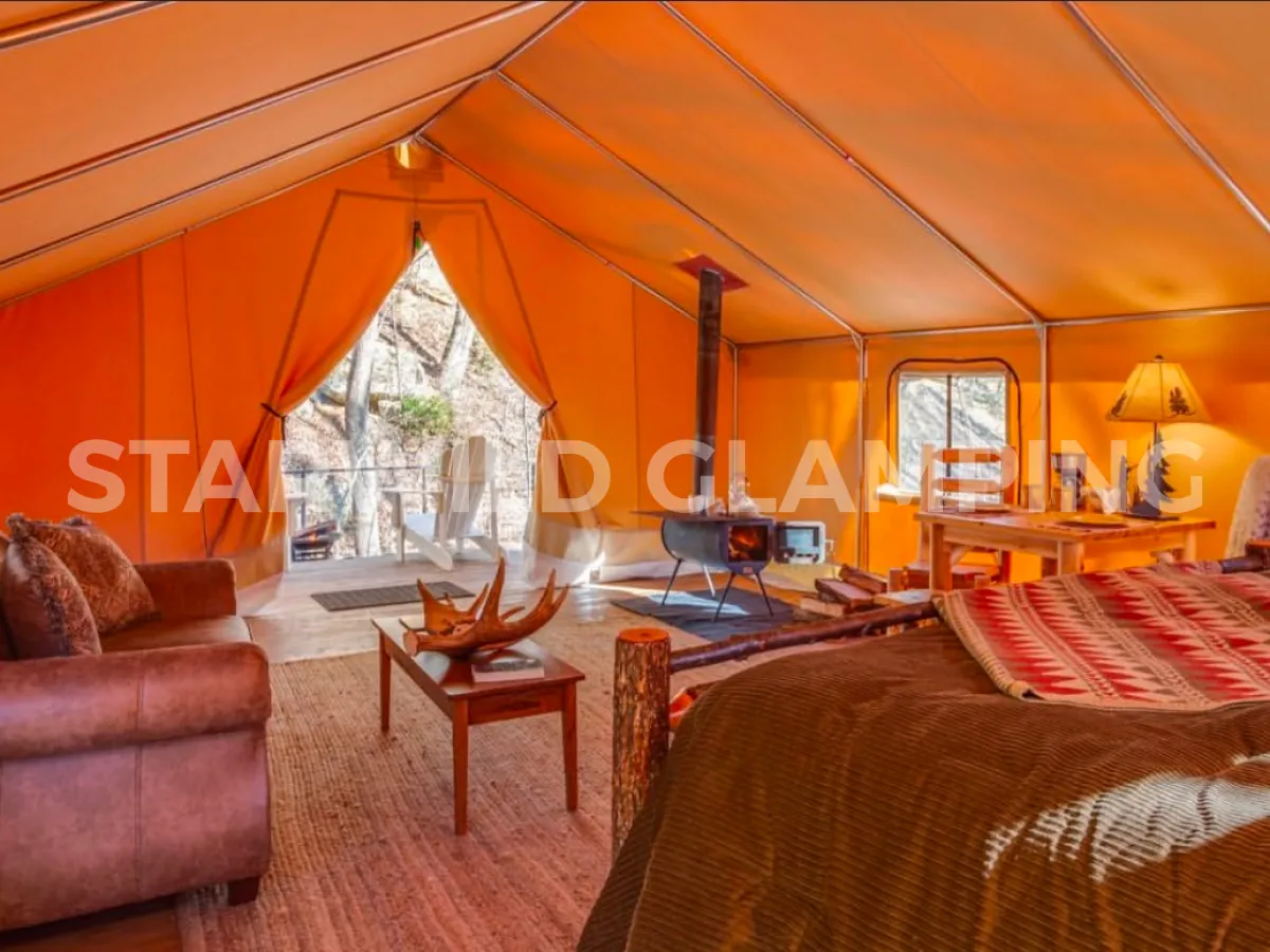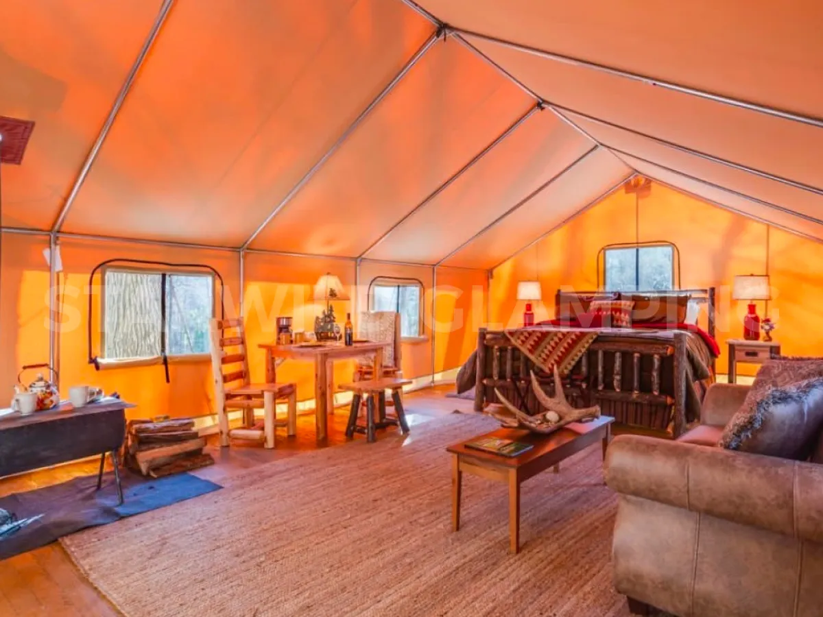This is a compact yet comfortable safari lodge, perfect for families or couples. The Swan safari tent lodge offers a cozy living space with three standard sizes, indoor area from 18.8㎡ to 31㎡, ensuring a comfortable stay in the wilderness.